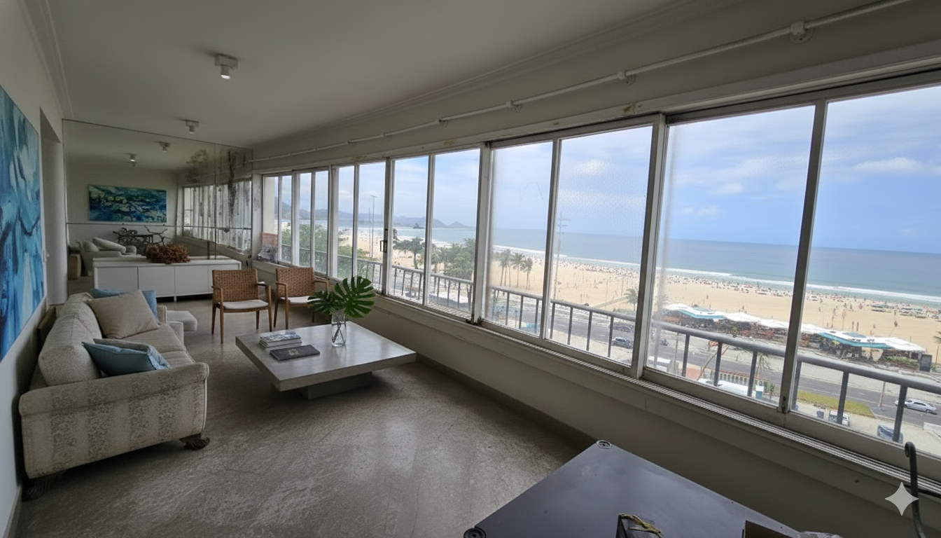 This apartment is a blank canvas for a full renovation. Whether you prefer a modern open-concept layout, luxury finishes, or a classic design, the structure and location provide exceptional possibilities. Homes with this type of view, privacy, and space are increasingly rare on the Copacabana beachfront.